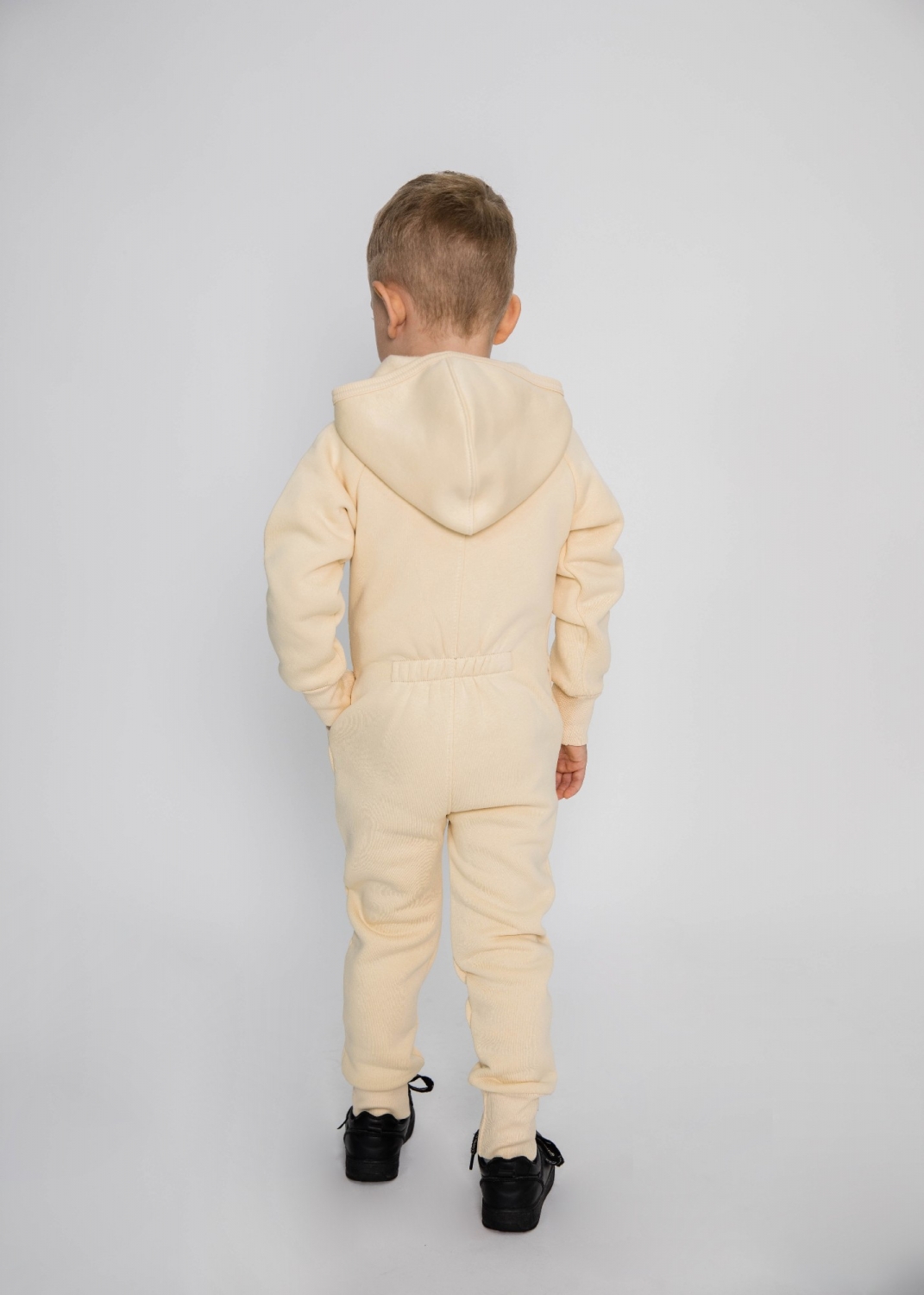 Купить оптом 318-СЛ. Комбинезон на молнии с капюшоном, сливочный, хлопок 65%, 35% ПЭ, 3 нитка толстовка (начёс) 86,92,98,104 в Светлограде