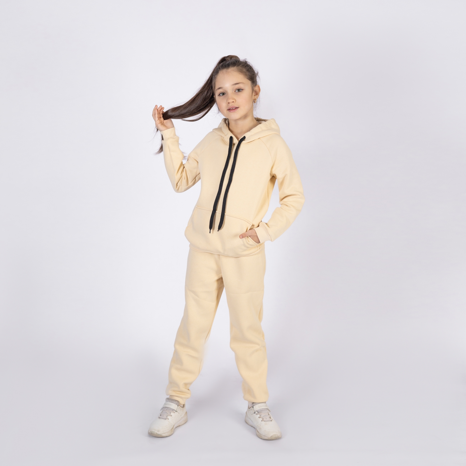 Купить оптом 296-СЛ. Свитшот с капюшоном + Штаны, хлопок 65%, 35% ПЭ, 3-х нитка (начес) сливочный 80,86,92 в Светлограде