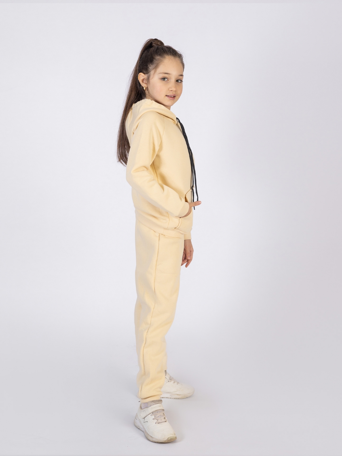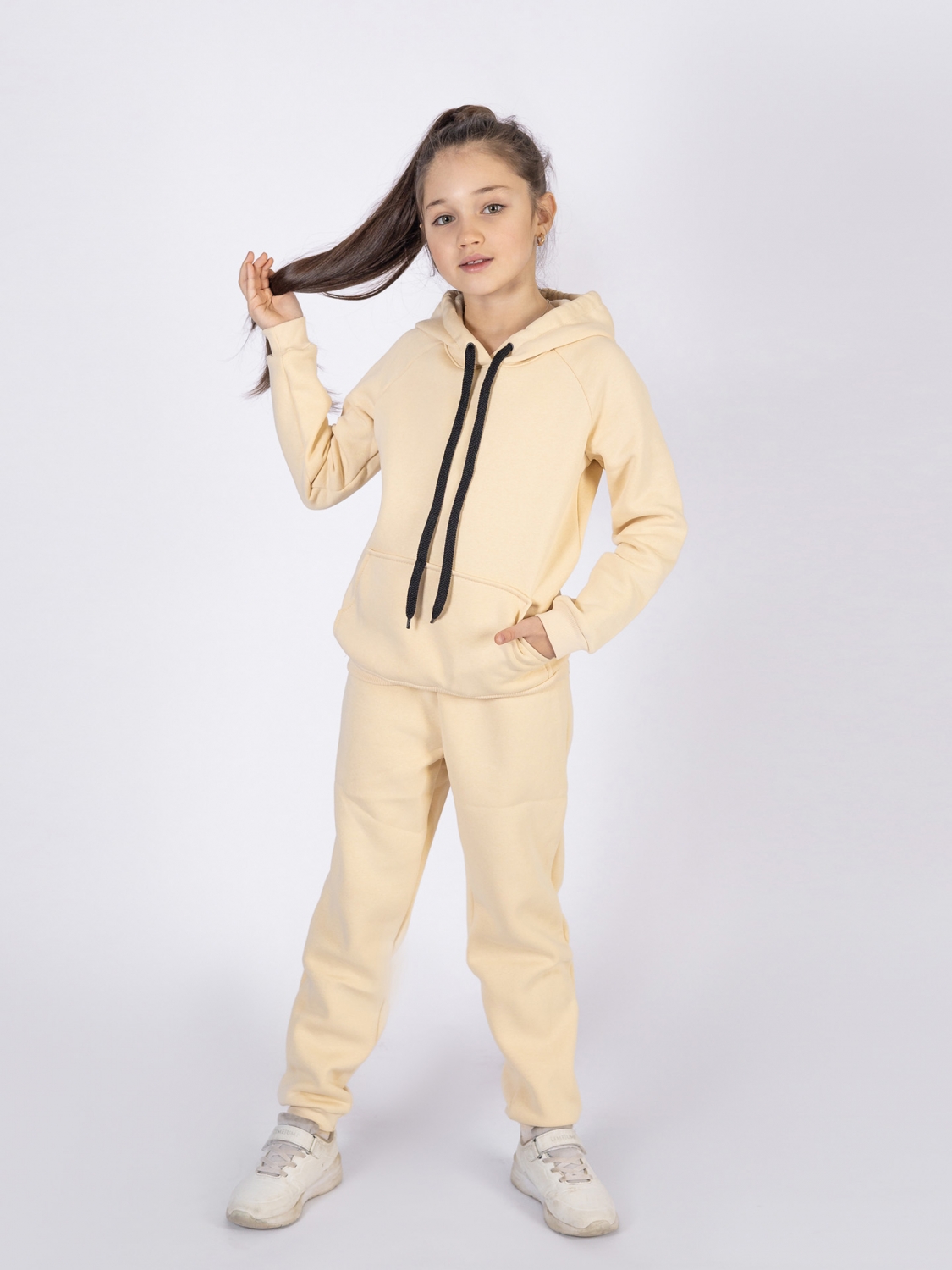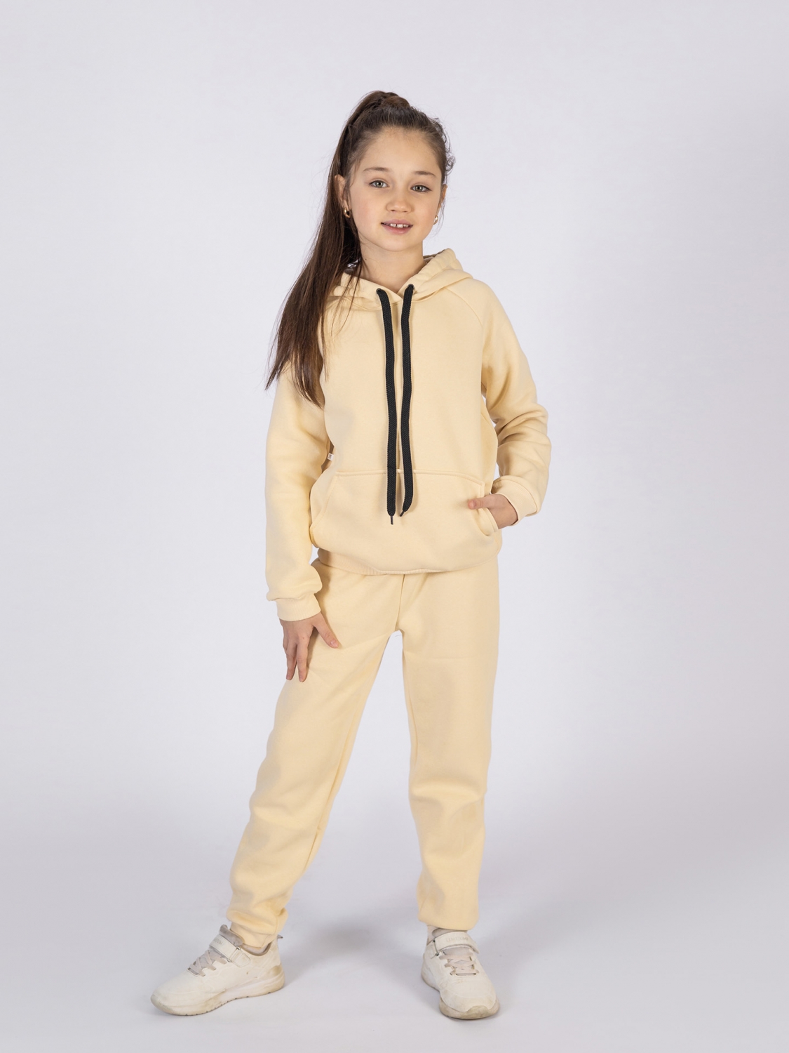 Купить оптом 296-СЛ. Свитшот с капюшоном + Штаны, хлопок 65%, 35% ПЭ, 3-х нитка (начес) сливочный 98,104,110,116 в Светлограде